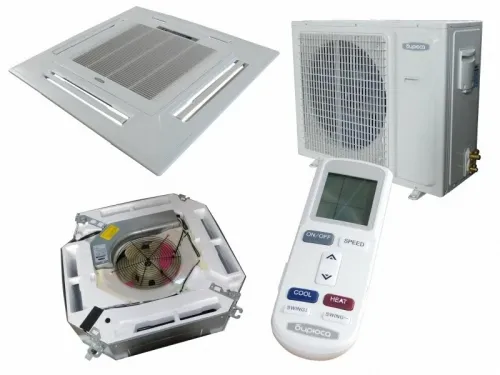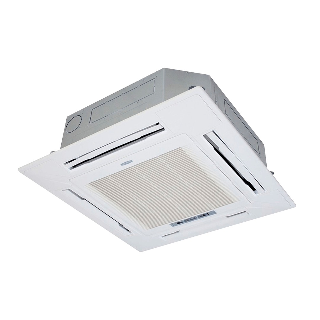 - Четырехпоточное распределение воздуха: Благодаря специальной конструкции декоративной панели, охлажденный воздух равномерно распределяется по всем направлениям (360°), исключая появление «мертвых зон».