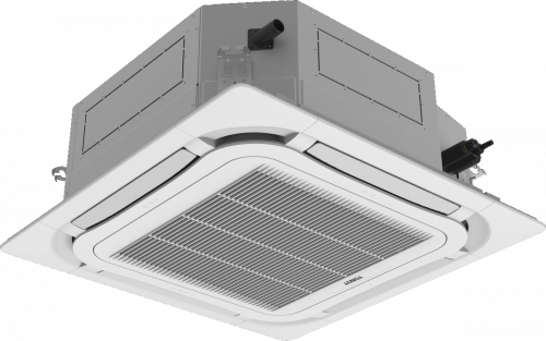 - Равномерное распределение воздуха: Кассетная конструкция обеспечивает подачу воздуха сразу в 4 стороны, гарантируя равномерное охлаждение или обогрев всего помещения.